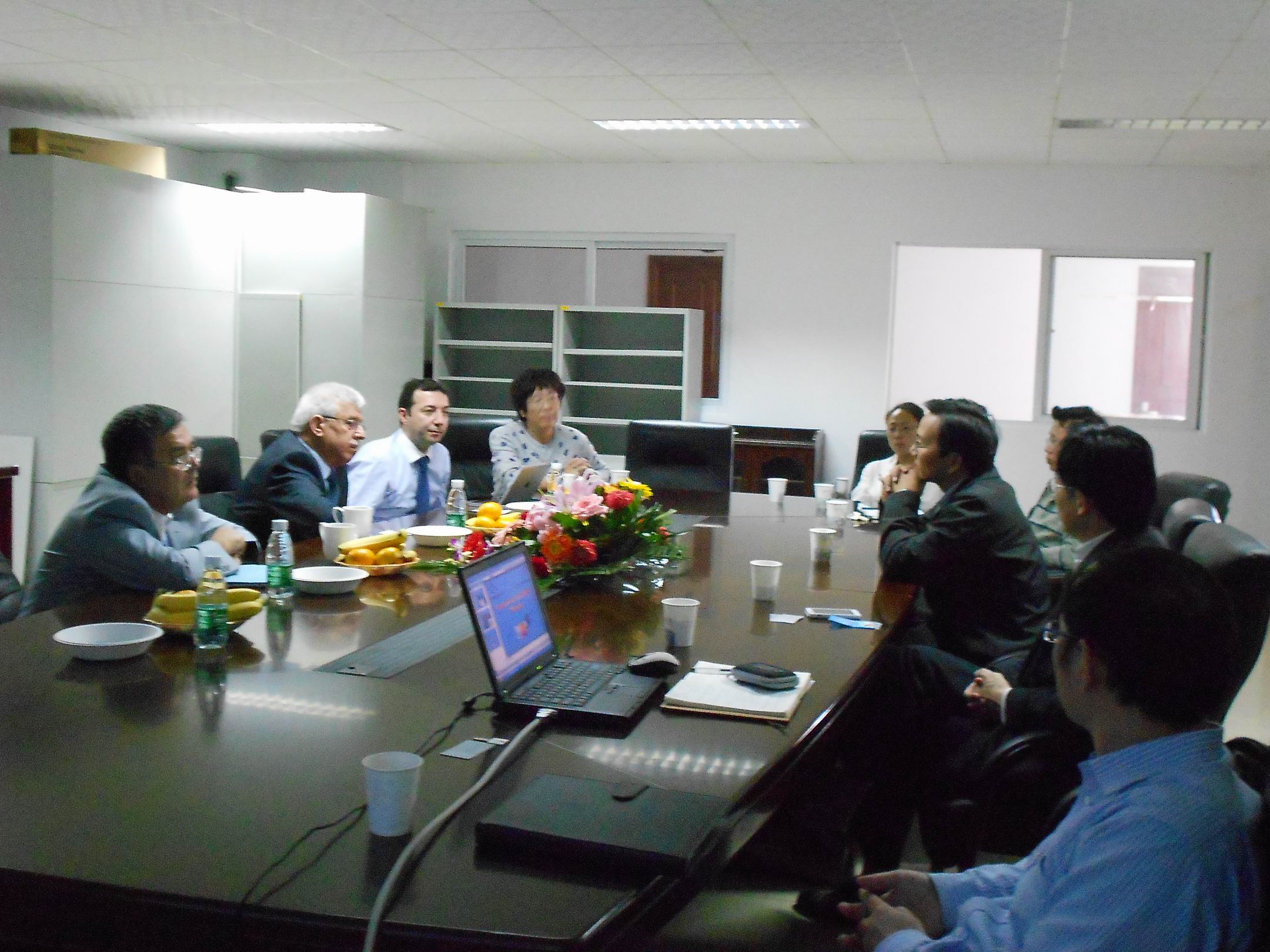 2012年10月17日,土耳其安纳多鲁大学校长Davut AYDIN教授,副校长Mustafa CAVCAR教授和Ender SUVACI教授借参加南航建校60周年庆典之际,在国际合作处处长金泉元、外国语学院张长缨老师陪同下,来污污漫画 访问。交流会在污污漫画 15号楼会议室举行,院长朱如鹏教授、院党委书记陈文亮教授、王晓雷教授、傅玉灿教授、沈建新教授、安鲁陵教授、冷晟老师等参加了交流会。