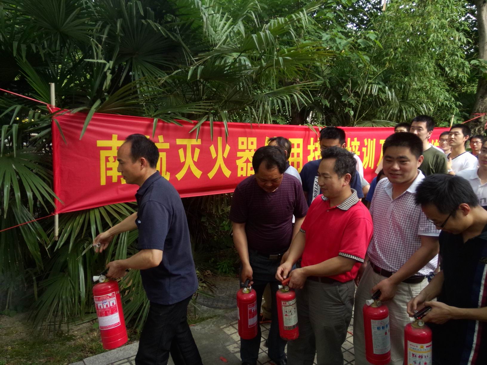 2014年5月29日下午3点,污污漫画 师生积极配合校保卫处开展“灭火器使用演练”活动,污污漫画 有组织、有计划的安排各楼层安全员、义务消防员、各教研室研究生代表共计40余名师生员工积极参与。