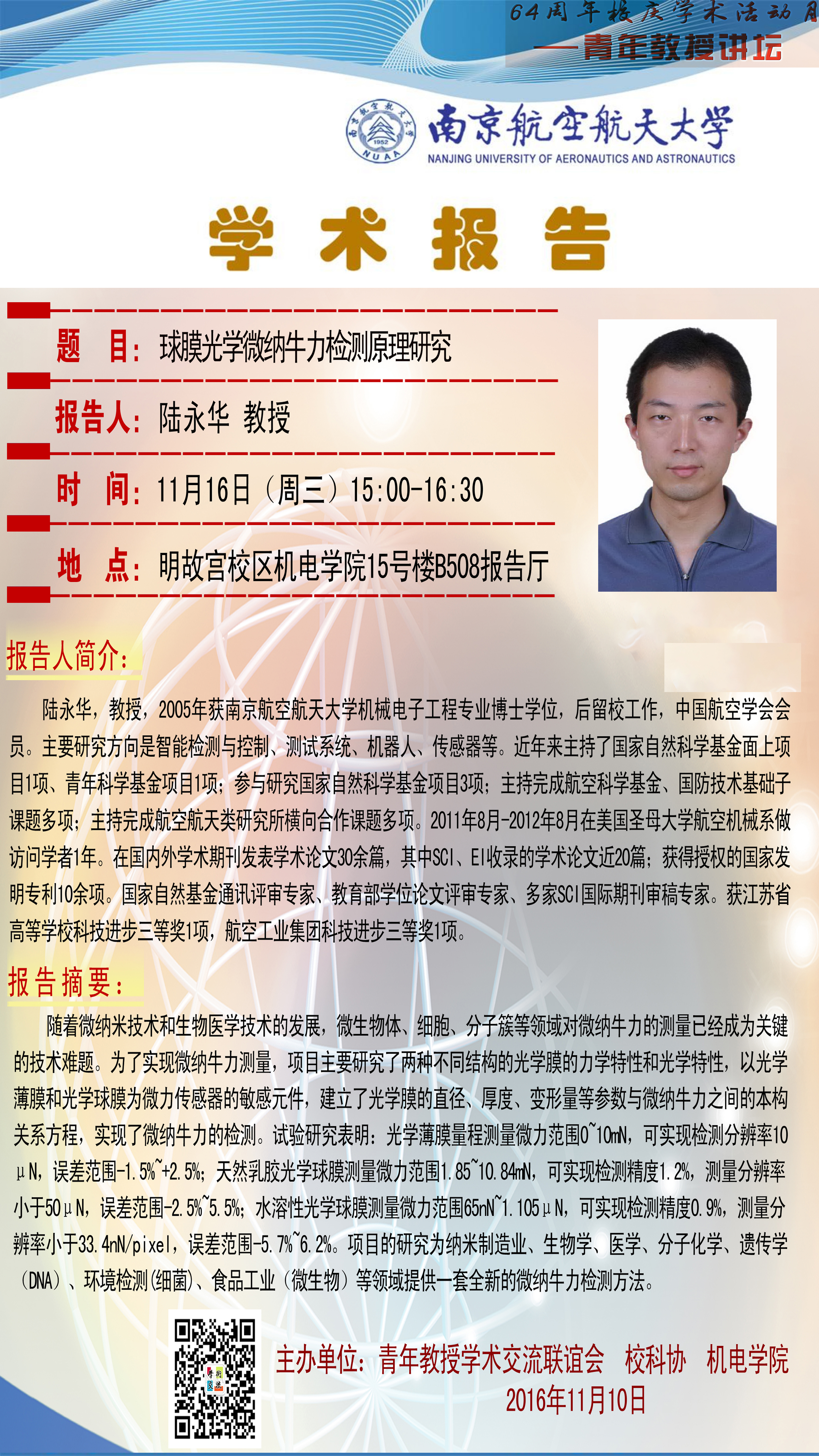 球膜光学微纳牛力检测原理研究--陆永华 教授