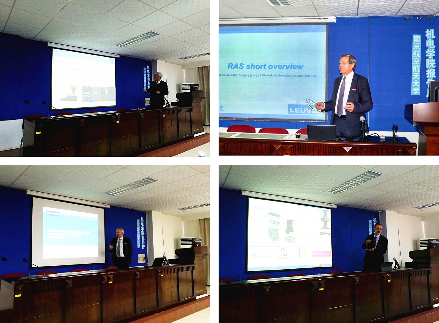 授聘仪式结束后,由徐正扬副院长主持,举行了首届中比制造论坛。Hendrik Van Brussel院士、何宁教授、Bert Lauwers教授、曾永彬教授、Dominiek Reynaerts教授、姚佳峰博士、钱军博士、丁文锋教授的博士生等先后做了技术报告,内容包括医疗机器人、微细机械加工、抗疲劳制造、复合制造、微细电化学加工、微元扫描电化学制造、细胞检测、微细电火花加工、单层钎焊CBN砂轮等,并回答了听众所关注的一系列问题,很好地促进了双方在科学研究方面的交流和了解。