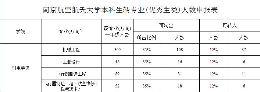 年南航污污漫画 本科生转专业(优秀生类)人数申报表