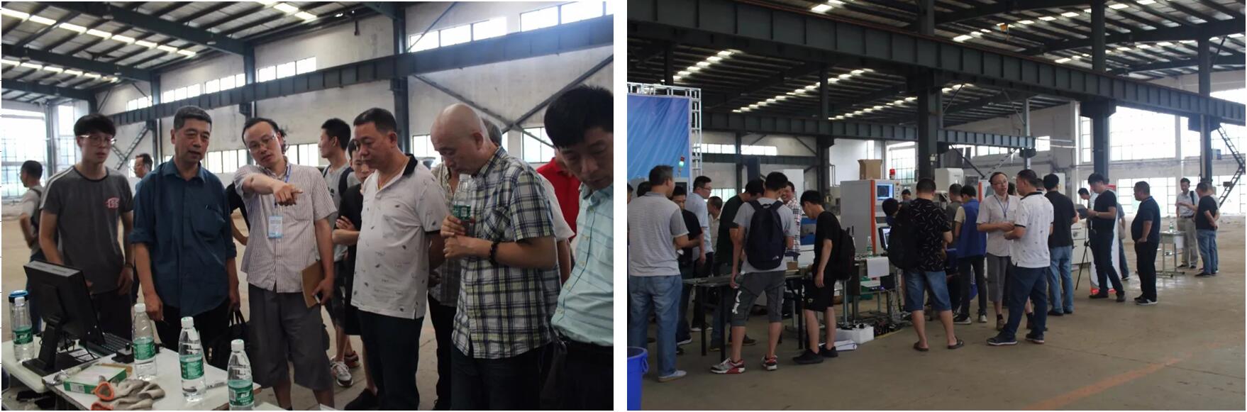与此同时在机床展示现场,各机床厂家按大会既定规则展开了现场切割加工演示及技术交流活动。此次参展的协办单位共18家,展示机床共13台,在3天时间内将围绕着高效切割、高质量切割、切割精度展示、电极丝损耗及自选特色切割(如超高厚度切割)等项目进行技术交流,从一定程度上,体现出目前我国“中走丝”机床的加工现状和水平。