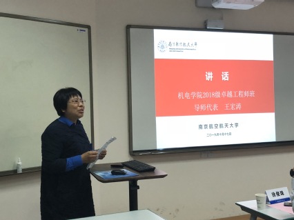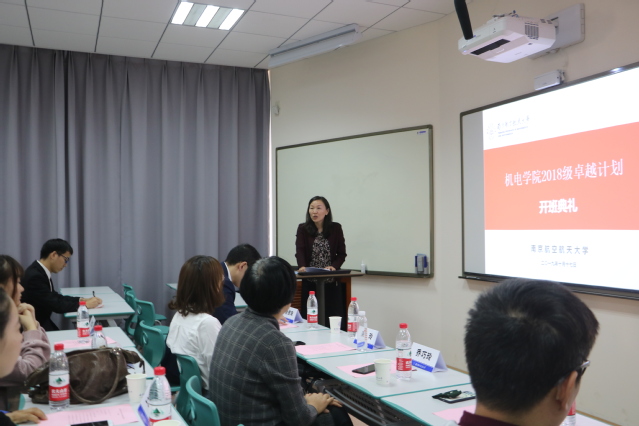 10月17日下午,污污漫画 2018级“卓越班”开班典礼在将军路校区5303教室举行。本次活动邀请了菲舍尔航空部件镇江有限公司工程中心副主任乔巧玲、仅一联合智造有限公司人事经理束玲,污污漫画 教学副院长于敏教授、党委副书记徐俊珠老师、校教务处实践科科长袁磊老师、2018级“卓越班”导师王宏涛老师、2018级“卓越班”辅导员余珂欣老师、本科教学秘书彭尽如老师、2016级“卓越班”优秀学生代表张洺铭同学以及2018级机械工程专业“卓越班”与2018级飞行器制造工程专业“卓越班”全体同学参加了本次活动,活动由2018级“卓越班”辅导员孙志海主持。