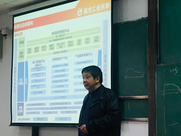面对专业知识尚处于空白的大一新生,宋利康结合洪都在航空产品研制过程中的数字化实践,从支撑产品创新研制的IT架构、产品研制数字化环境、生产管理信息化平台、综合运营管控体系、信息化基础支撑条件等五个方面,系统讲述了航空主机厂的飞行设计与制造,尤其突出介绍了在产业转型升级的背景下,飞机设计制造技术的智能化、数字化、柔性化发展,生动鲜活地呈现出飞机由设计到制造的全过程、全环节,有力增进了学生对飞行器制造专业的科学定位与高度认同。宋总的讲述娓娓道来,重点突出,同学们受益匪浅,现场不时响起热烈的掌声。