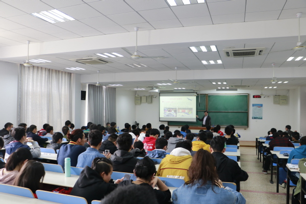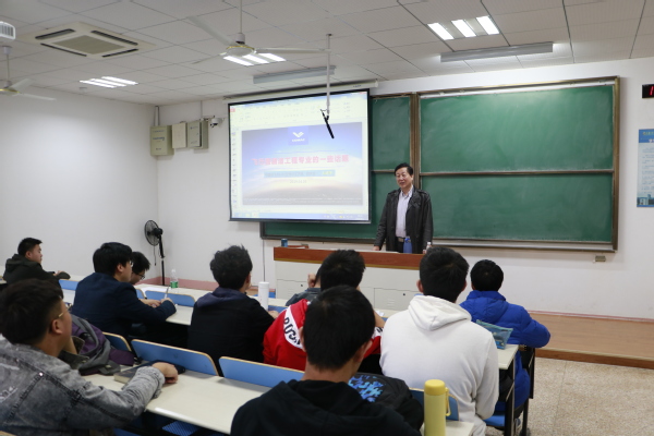 为提高同学们对中国民机的历史及制造的整体认识,王建华介绍了中国民机制造的起源、中国商用飞机公司的成立过程以及中国商飞的飞机型号,详细系统地讲解了ARJ21的研制流程,包括ARJ21-700基本数据(尺寸、性能、重量以及相关厂商)、策划、方案、设计、制造、试验、试飞、取证到最终交付用户全过程。通过一张张实景图片、一段段重点突出的讲解,有力增强了学生对飞行器制造专业的科学定位与高度认同。
