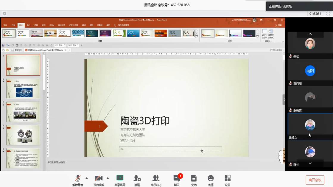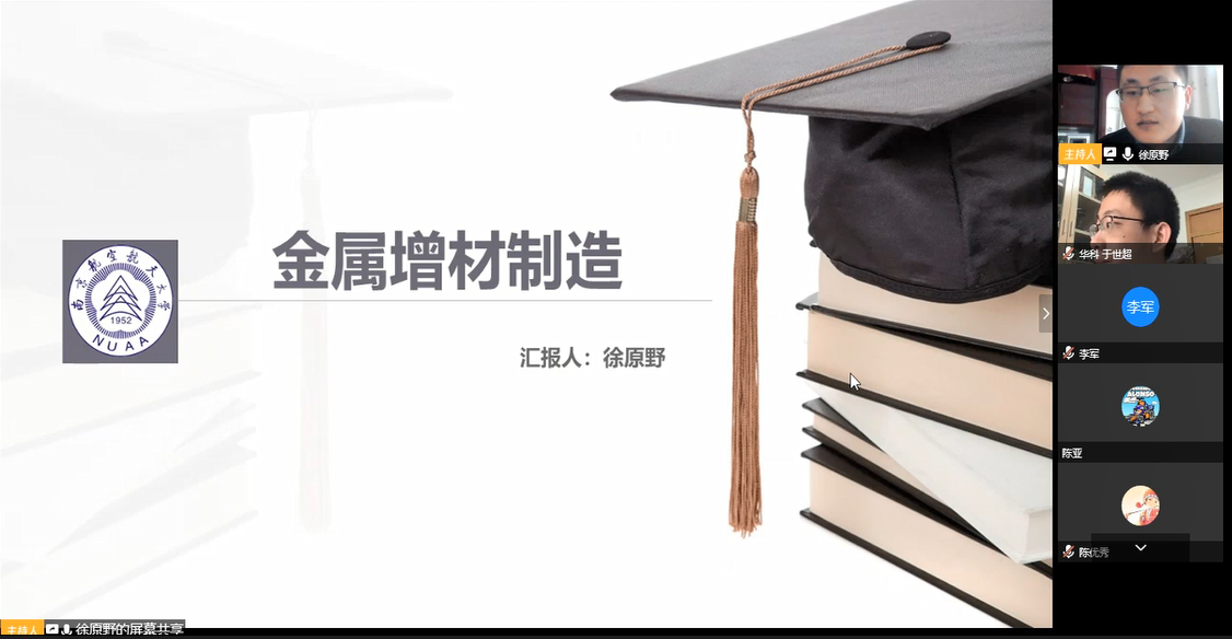 活动第四项,两个团支部就各自研究领域进行学术交流、相互学习。首先华科于世超团员就智能设计制造及高性能探测器超精密制造的研究介绍课题方向;然后南航电光团队团员张寒旭、徐原野、娄桂宾就陶瓷增材、金属增材及电化学沉积增材等方向点介绍增材制造方向。双方在许多研究方向上有相似之处,产生学术共鸣。