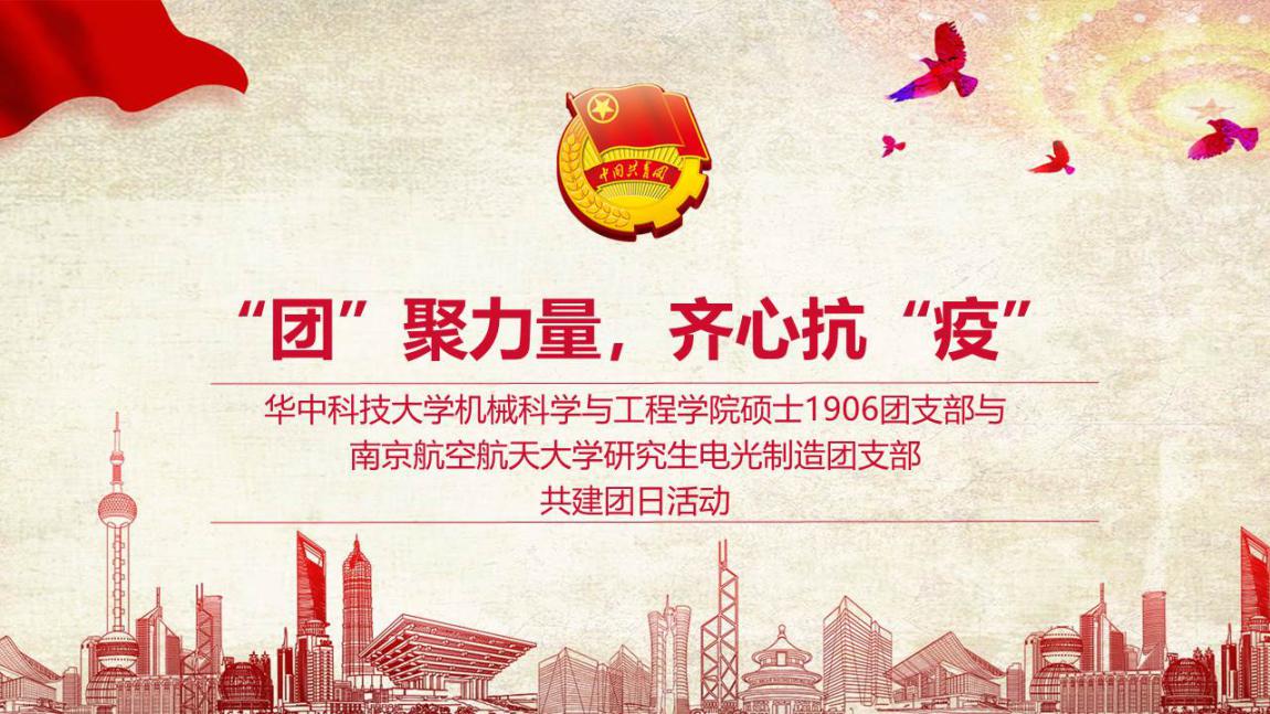 因为对武汉“疫”情的密切关注,促成了此次举行团日共建活动的纽带。因为对相互课题前沿知识的学习,加强了南航与华科学子的合作。我们坚信,此次团日共建活动只是两个团支部友谊的起点,双方一定能够在交流学习中拓宽课题思路,促进研究进展,取得更大进步,从而为我们伟大祖国的繁荣昌盛贡献青春力量!