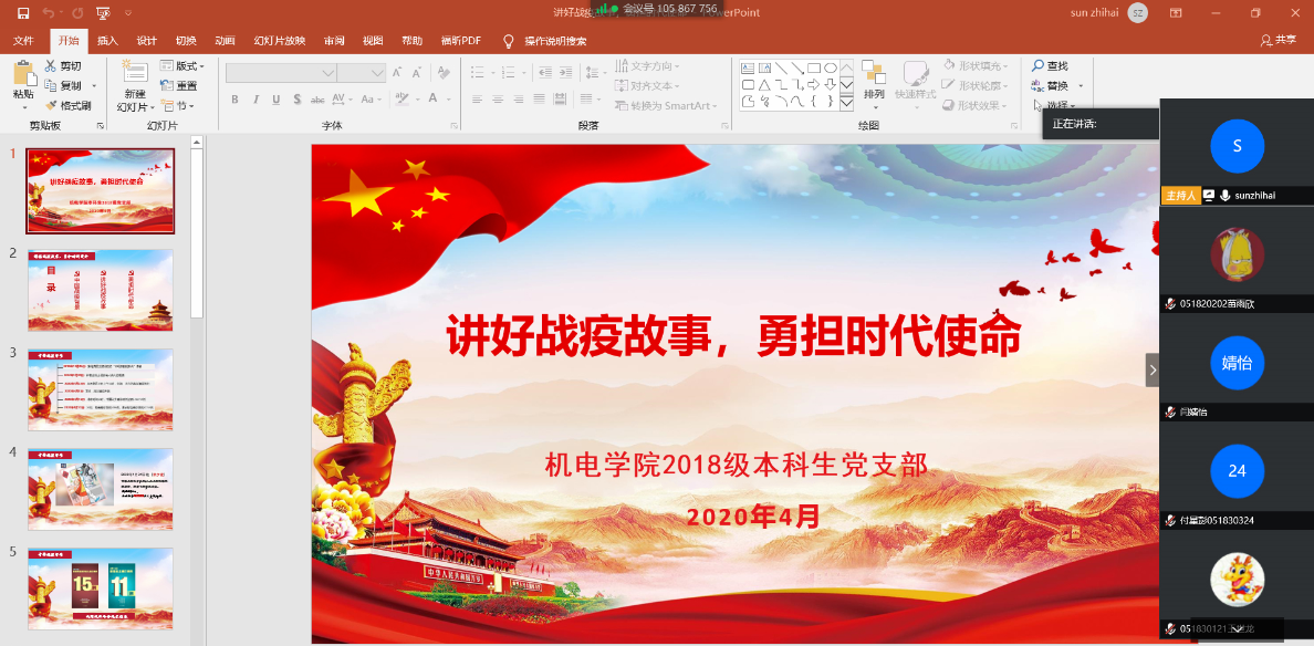 疫情当前,党员先行。为推进疫情防控期间党支部的思想建设工作,加强支部党员的思想引领教育,鼓励支部党员为疫情防控贡献青春力量,418日晚,污污漫画 2018级本科生党支部通过腾讯会议平台,开展“讲好战‘疫’故事,勇担时代使命”专题“云”党课。