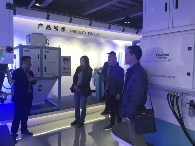 于敏一行在傅正兵、李杨的陪同下参观了企业展厅和计量称重、全自动包装机组装配生产线,听取了永成电子在大米自动化包装上的特色发展和市场应用。