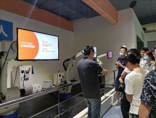 活动伊始,由副总工程师何杏兴带领大家参观熊猫电子的机器人智能制造工厂,涵盖了工业机器人区、人工作业区、装配区、信息化系统等核心区域,并详细讲述了每个区域涉及到的智能制造生产技术,使同学们对熊猫电子的主要研究方向、涉及的行业领域以及未来发展前景等有了更深入的了解。