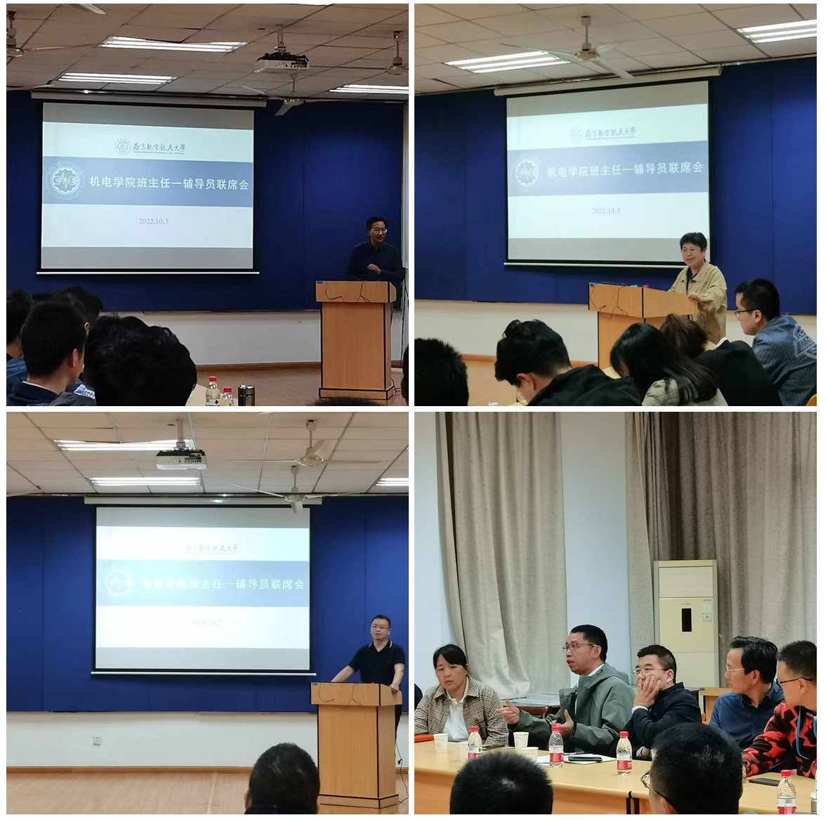 随后,学院优秀班主任陈文亮教授、黎向锋教授和段晋军老师分别分享了班主任工作经验。陈文亮强调了班主任在本科生大学各阶段发挥的作用,重点提出要帮助新生适应大学生活,引导新生重视学习方法,同时要协助班干部建设好班级学风,增加学生的专业归属感;黎向锋通过自身经验,建议班主任加强与学生家长的沟通交流,充分利用家长的力量发掘学生的闪光点、减轻暂时遇到学习困难的学生的心理负担,从而帮助学生尽快融入大学生活,建设良好的班级学风;段晋军从态度、班风、科创、文化四个方面交流了工作经验,提出要明确当班主任的意义,多和学生交流,鼓励并引导学生参加各类科创竞赛活动,建设好的班级文化。