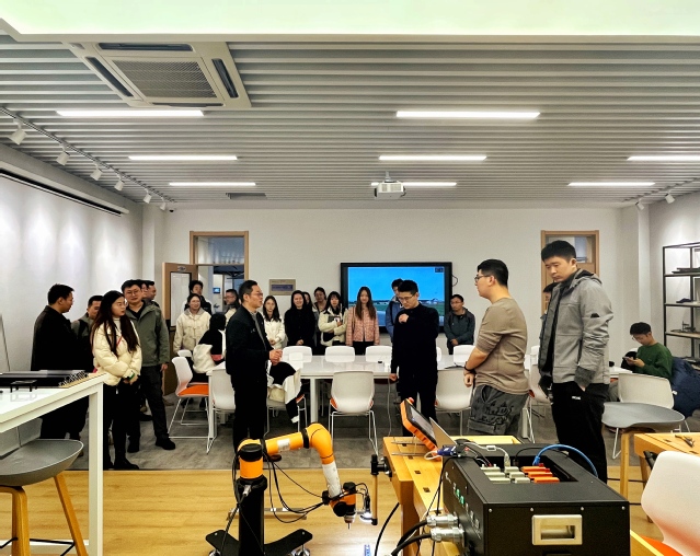 最后,双方围绕学生创新培养体系建设,进行了实地考察交流,共同参观了长空学院准书院制下的科创工作室体系建设相关成果,如智能飞行工作室、智能制造工作室、美育工作室等,就智能制造工作室机器人项目协同共建机制达成共识。