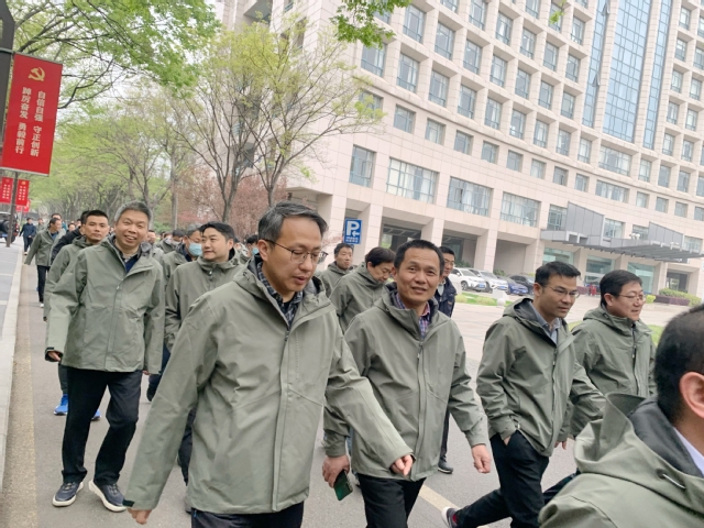 教职工们身着统一服装、整齐列队,以饱满的精神状态、昂扬的气势集体整队出发,展现出健康向上、团结奋进的精神风貌。