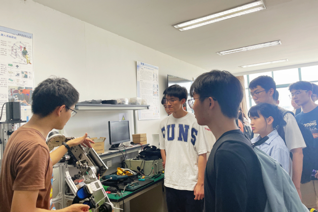 首先,机械电子工程系的研究生胡松佩结合实验室具体研究课题,为同学们介绍了电阻抗成像、肿瘤细胞电阻抗检测等相关原理和研究方法;研究生竺文帆从控制外骨骼机器人移动的方式入手,结合本科所学的课程知识,由浅入深介绍了多种类型的外骨骼机器人并进行现场操作,完善了同学们的知识储备。