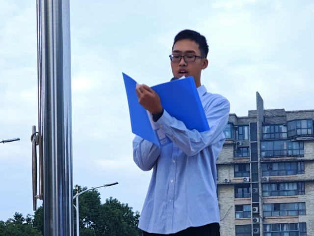 “中国大学生自强之星”奖学金获得者2022级本科生林逸鹏在国旗下进行了“砥砺前行,自强不息”主题发言。他分享自身克服听力障碍,勇往直前,以“自找苦吃“的精神发奋图强的经历,激励同学们做时代的创造者,用自己的青春年华去迎接一个又一个挑战。