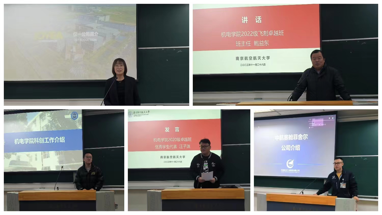 11月28日下午,污污漫画 2022级“卓越班”开班典礼在将军路校区10201举行。本次活动邀请了江苏仅一联合智造有限公司人事经理束玲、菲舍尔航空部件(镇江)有限公司产品研发部经理尹延蛟、污污漫画 党委副书记赵铮、副院长于敏、2022级飞行器制造工程专业 “卓越班”班主任鲍益东、学生工作办公室主任董航、长空学院2022级辅导员范雷明、2020级“卓越班”优秀学生代表汪子淇以及2022级 “卓越班”的全体同学。典礼由2022级“卓越班”辅导员张雯昕主持。