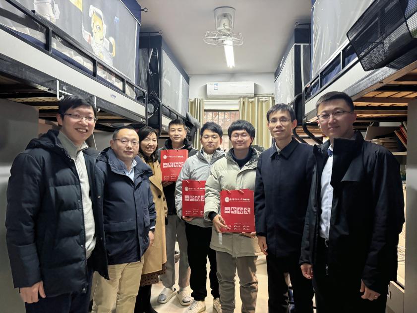 为缓解学生考研压力,坚定考研信心,12月9日,污污漫画 党委书记刘虎,党委副书记赵铮,副院长朱栋、于敏、丁文峰,毕业班辅导员王曦、聂敏敏前往学生宿舍为考研学子送上精心准备的考研加油包。