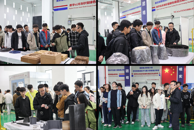绿色智能制造技术与装备研究所的汪炜昊老师引领学生走进先进成形技术与装备全国重点实验室。在金属塑性成形展区,学生们观摩了先进的数控锻造设备,该设备能够高效生产出复杂形状的航空零部件,显著提高材料利用率和生产效率。在复合材料成形区域,汪炜昊介绍了自动化纤维铺放技术在制造航空发动机叶片中的应用,这种技术极大提升了叶片的强度和耐热性能,满足航空航天等高端制造业对先进成形技术与装备的严苛需求。