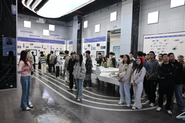 在南京长江工业技术研究院有限公司党群工作部的金瑶老师带领下,学生们首先参观了南航科教产教融合展馆。展馆内,从行业融合、校地融合、开放交流、服务三航等多个维度,“逐梦启航、融合发展、人才培养、科技创新、发展赋能、扬帆未来”六大板块展示空间依次展开。金瑶详细讲解,学生们深入了解了国际创新港的建设背景、理念、定位、进展、成果以及未来规划,对南航在科教产教融合领域的探索与成就有了全面认知。
