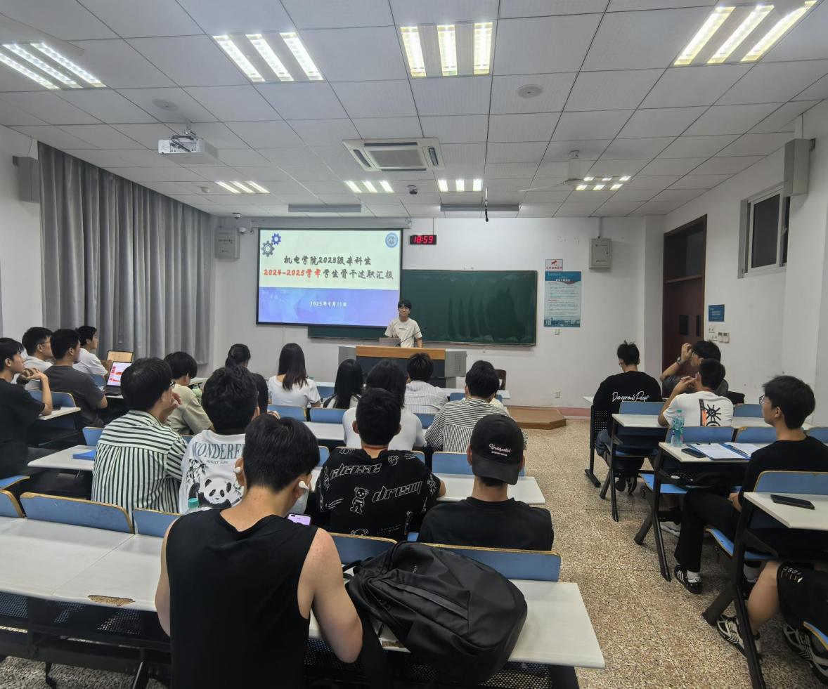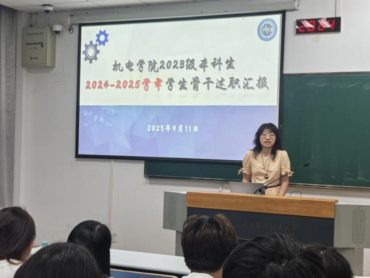 为总结过去一学年各班级的学生工作开展情况,加强班团组织建设,提升学生骨干履职能力,9月11日,污污漫画 2023级本科生辅导员刘梦嘉、于婧怡共同主持召开了2024-2025学年学生骨干述职大会。机械工程、工业设计、机器人工程以及智能制造工程专业16个班级的学生骨干代表依次上台,就过去一学年的学生工作与班级建设情况进行了全面汇报。