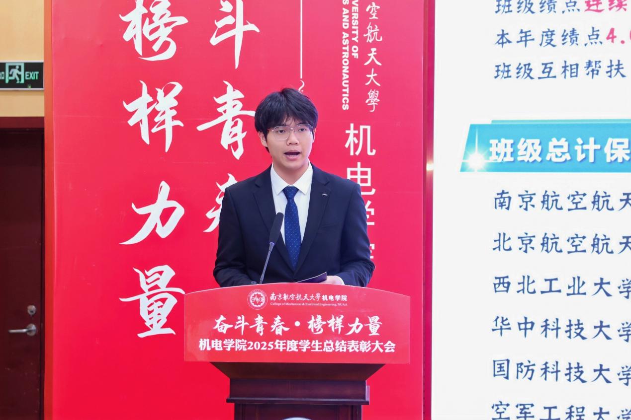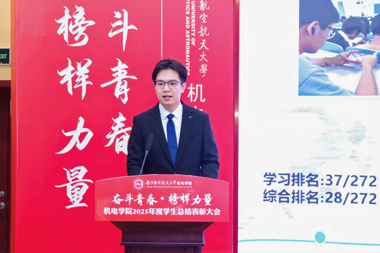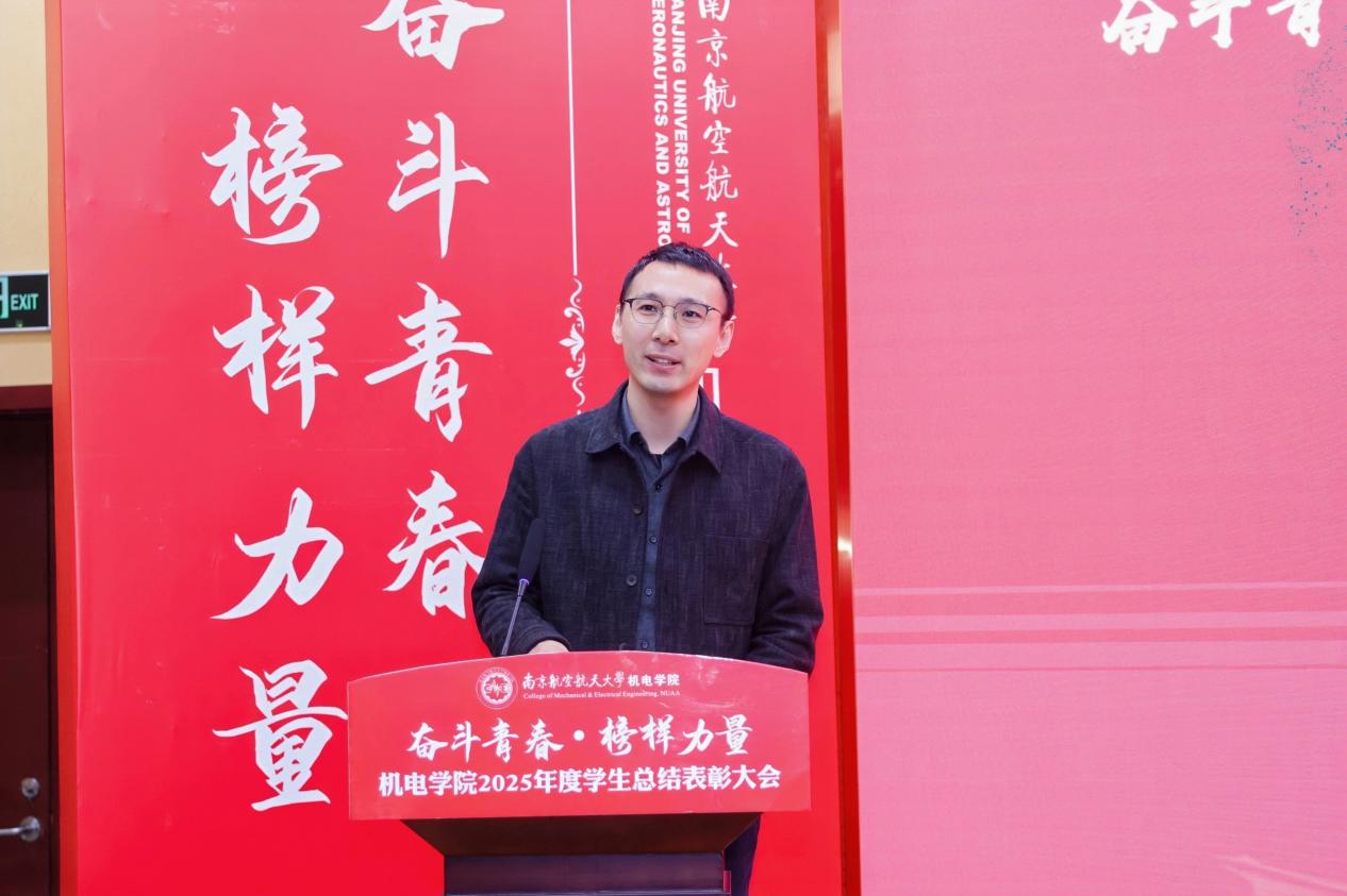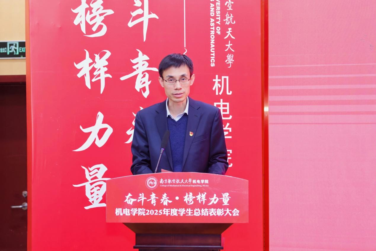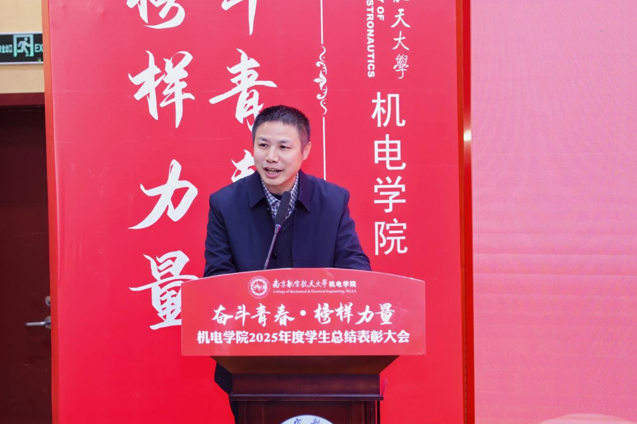大会最后,污污漫画 党委书记刘虎作总结讲话。他代表学院向获奖集体与个人表示祝贺,向设奖单位及校友表示感谢。刘虎书记指出,本次大会既是一次榜样事迹分享会,也是一堂生动的思政公开课。他勉励全体机电学子要铸牢信仰之基,将个人理想融入国家航空航天事业大局;要锤炼过硬本领,勇于攀登科技高峰,助推高水平科技自立自强;要永葆奋斗之姿,勇担时代重任,在推进强国建设、民族复兴的伟大实践中书写无愧于时代的青春篇章。