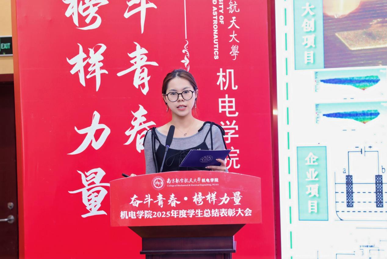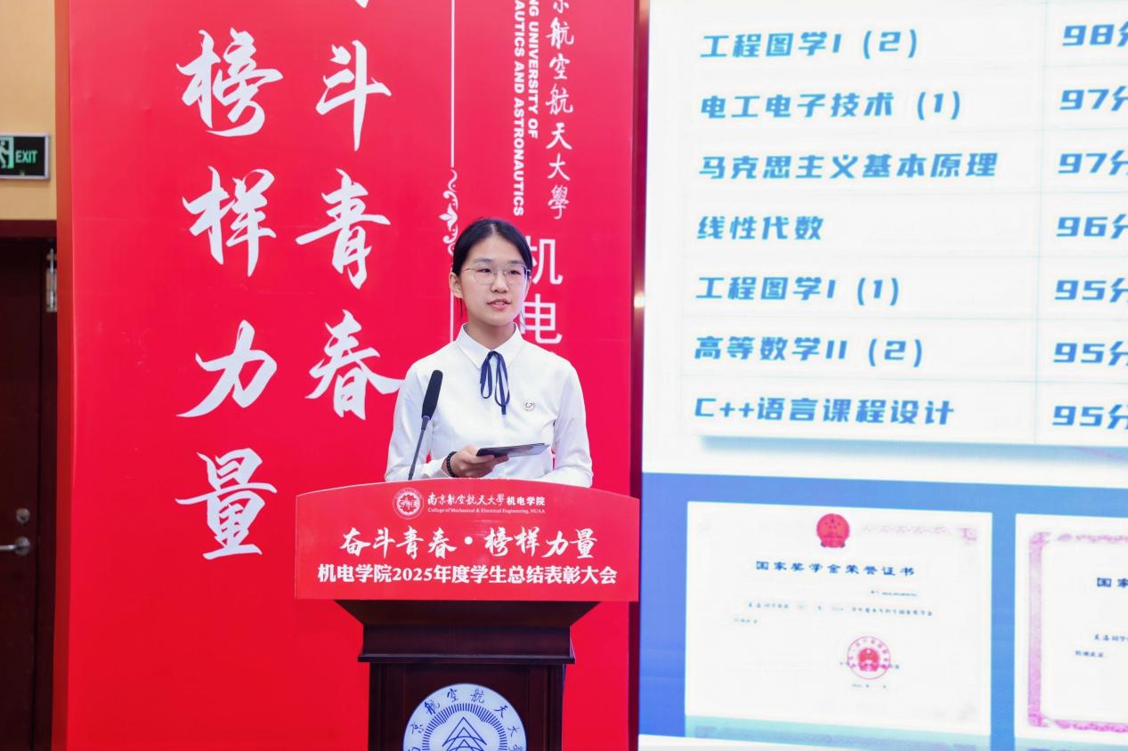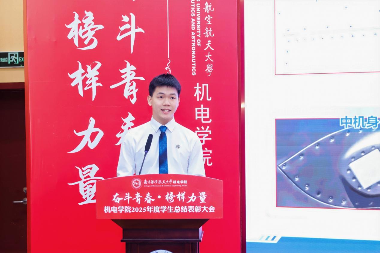 校长特别嘉奖获得者、2022级本科生吴洛以“打磨·啮合·载荷·装配”四个机械专业关键词串联起他的大学成长轨迹,讲述了从学业精进、科创攻坚到学生工作与社会服务的全面历练,展现了南航学子扎实的专业功底与全面的综合素质。