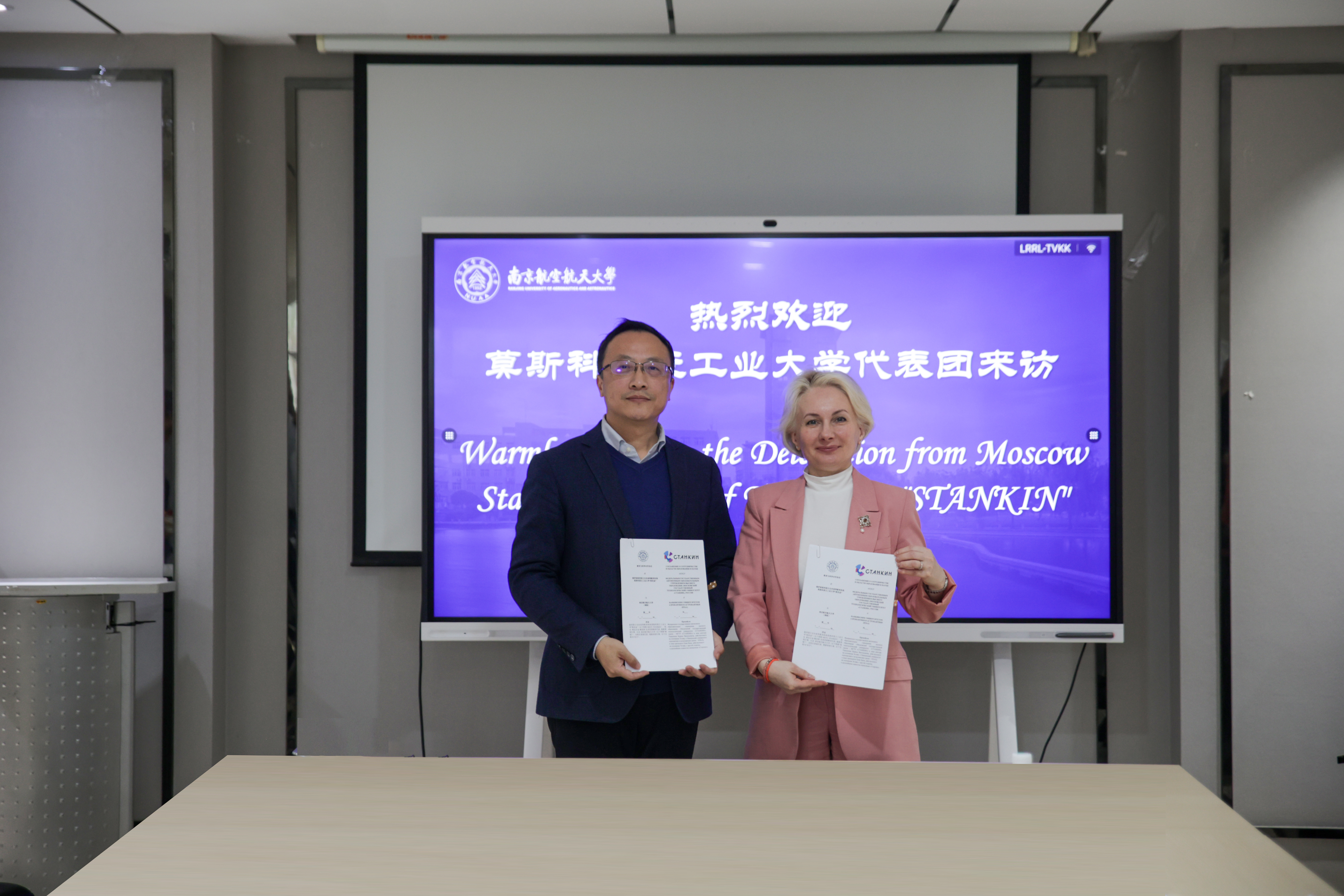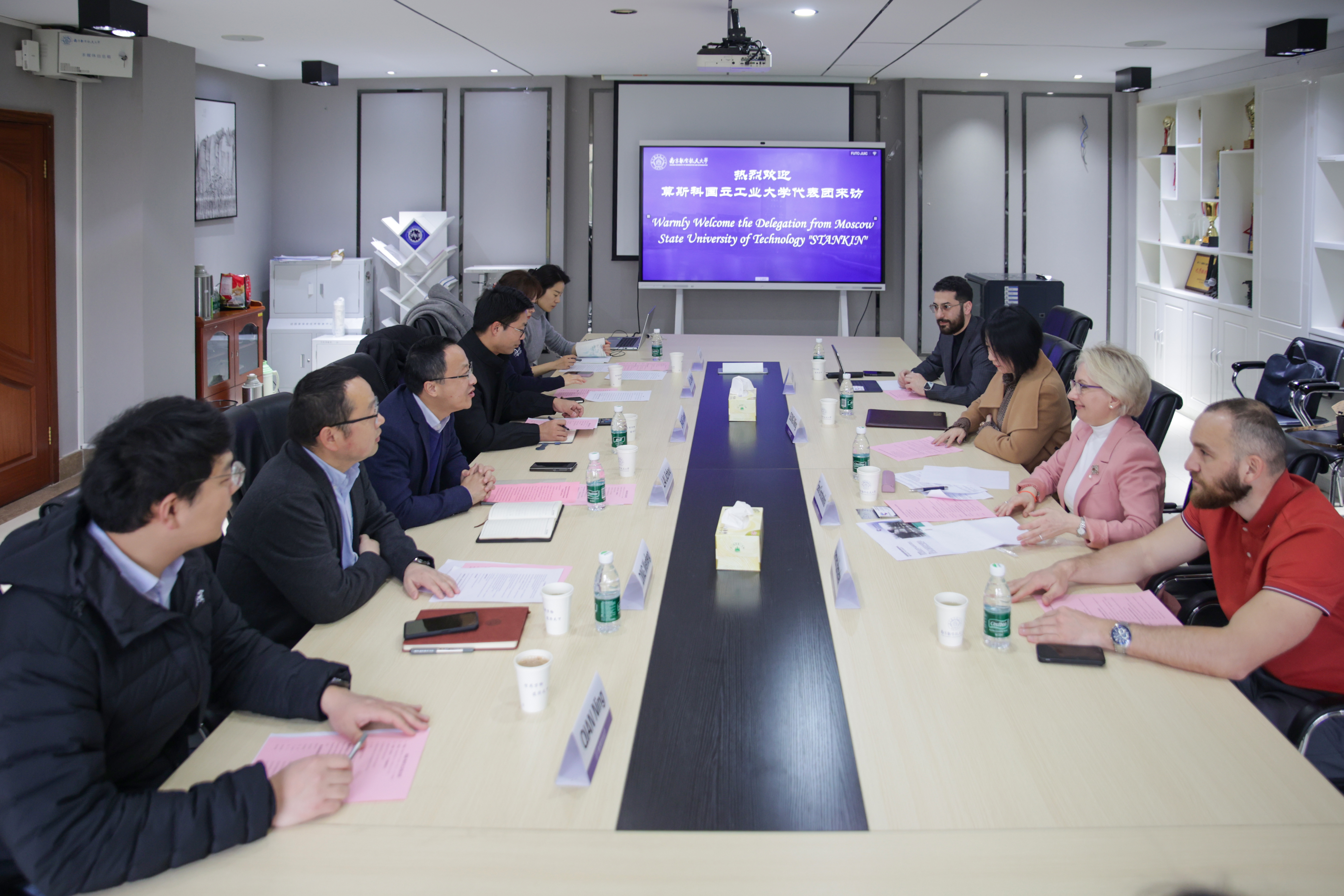 会上,赖际舟致欢迎辞,代表南航接收了莫斯科国立工业大学签署的合作协议。莫斯科国立工业大学代表随后致辞,表达了对两校未来合作的期待。双方分别介绍了本校学科特色与国际合作情况,并就联合培养项目、学术交流机制等后续合作进行了深入探讨。此次会谈进一步巩固了两校友好关系,两校将在机械工程领域深入实质性合作,实现优势互补、共赢发展。