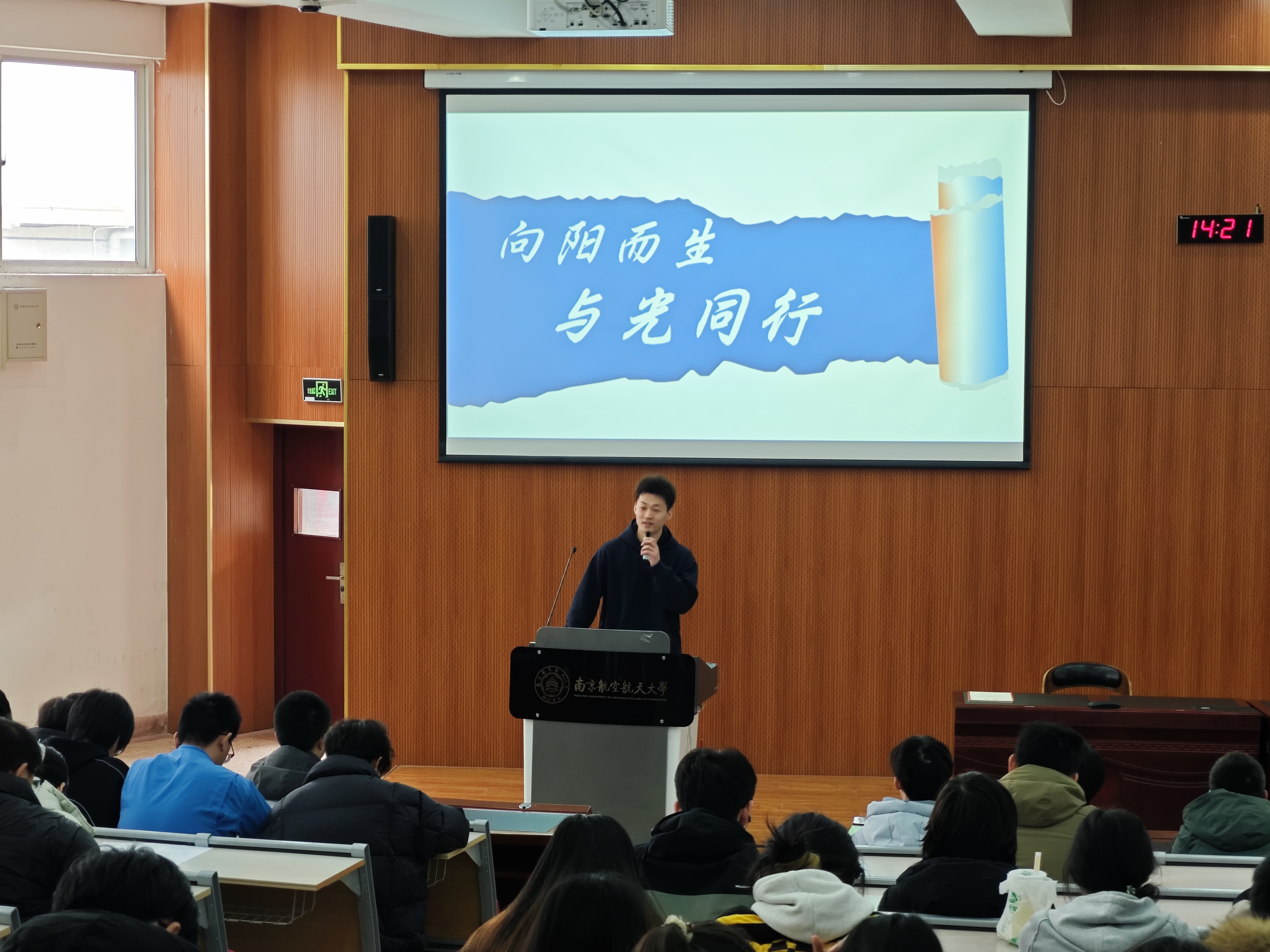 接着,辅导员王青围绕“向阳而生・与光同行”主题开展专题分享。他从心理建设与安全防护双维度出发,深入剖析大二年级学生在学业、人际、生活中普遍的生活状态与心理状态,引导同学们正视成长压力,学会接纳自我、与自我和谐相处,掌握情绪调节方法。强调宿舍互助帮扶的重要性,提醒全体同学提高反诈警惕意识,警惕各类电信网络诈骗手段,坚决远离校园贷,切实守护自身人身与财产安全。