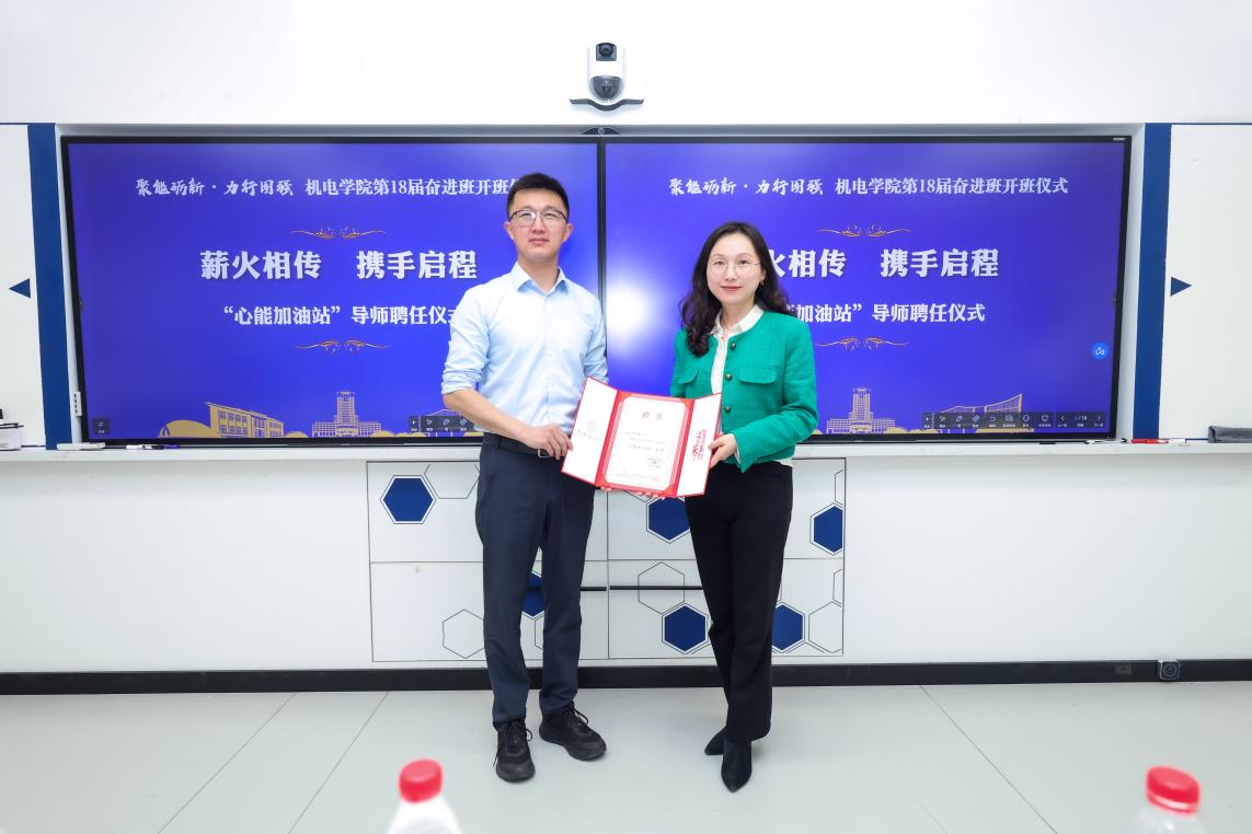 随后,为全面守护学员心理健康,筑牢成长发展的心理安全防线,学院特聘校心理健康教育中心陈瑜老师担任本届奋进班“心能加油站导师”。学院党委副书记赵铮为陈瑜老师颁发聘书,未来陈瑜老师将为奋进班学员提供专业的心理健康咨询、情绪疏导、压力调节等指导服务,为学员的身心健康成长保驾护航。